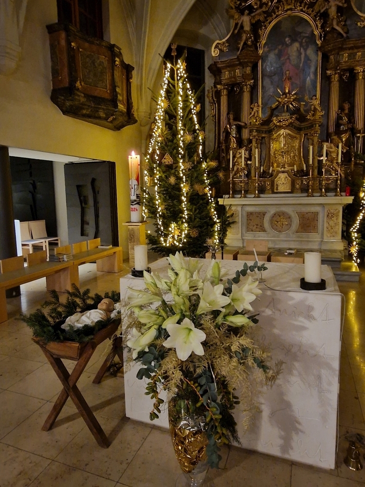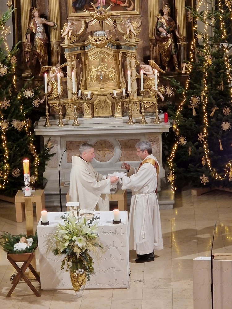 In der weihnachtlich geschmückten Kirche feierten dann Pfarrer Claudiu Budau und Diakon Michi Zepf in großer Gemeinschaft die heilige Messe.