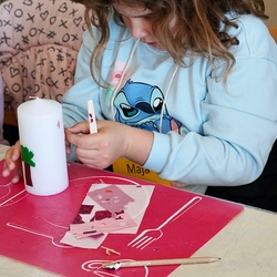 • das eigene Feierheft gestalten, eine Brosche aus Fimo und den Kirchenschmuck basteln