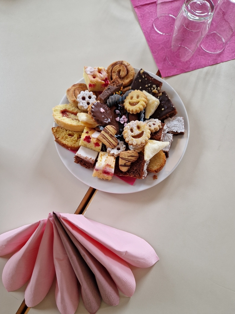 Nach dem Gottesdienst stand „Pfarrcafe des Kirchenchores“ auf dem Programm. Diese Einladung lockte viele Gäste an, was die Sängerinnen, die alles mit viel Liebe vorbereitet hatten, sehr freute!